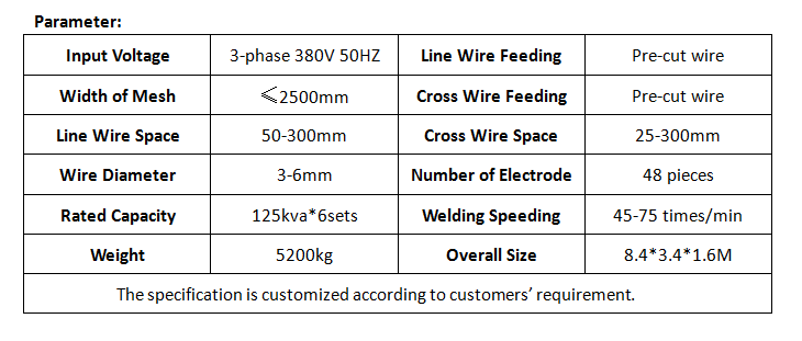 Fence mesh welding machine adopts PLC control system with touch screen input. The operation is more intelligent and convenient. Both the line wire and cross wire are feed from pre-cut wire. The line wire are put by labor and feeding automatically. When the machine is welding and pulling mesh, Labor can prepare the line wire for the next mesh in advance. This can improve production efficiency. The cross wire feed from multi hopper and fall automatically. The mesh panel is pulled by the servo motor repeated.